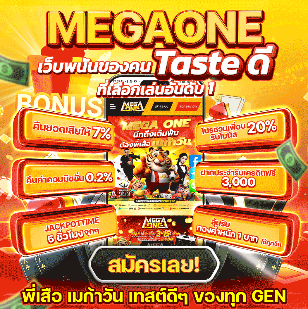 นอกจากนี้ MegaOne ยังมีโปรโมชั่นและโบนัสที่น่าสนใจมากมาย ไม่ว่าจะเป็นโบนัสต้อนรับสำหรับสมาชิกใหม่ โปรโมชั่นประจำสัปดาห์ หรือกิจกรรมพิเศษต่าง ๆ ที่จะช่วยเพิ่มโอกาสในการชนะรางวัลใหญ่ให้กับคุณ การเล่นพนันที่นี่จึงไม่ใช่แค่ความสนุก แต่ยังมีโอกาสในการสร้างรายได้ที่คุ้มค่า